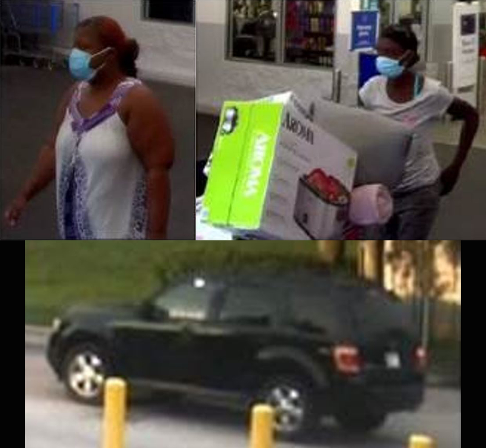 The two suspects, seen in these photos, took three televisions, and other items totaling around $900 from the store, and left without paying.