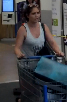 She was confronted at the exit by an employee, and the woman ditched the cart and fled.