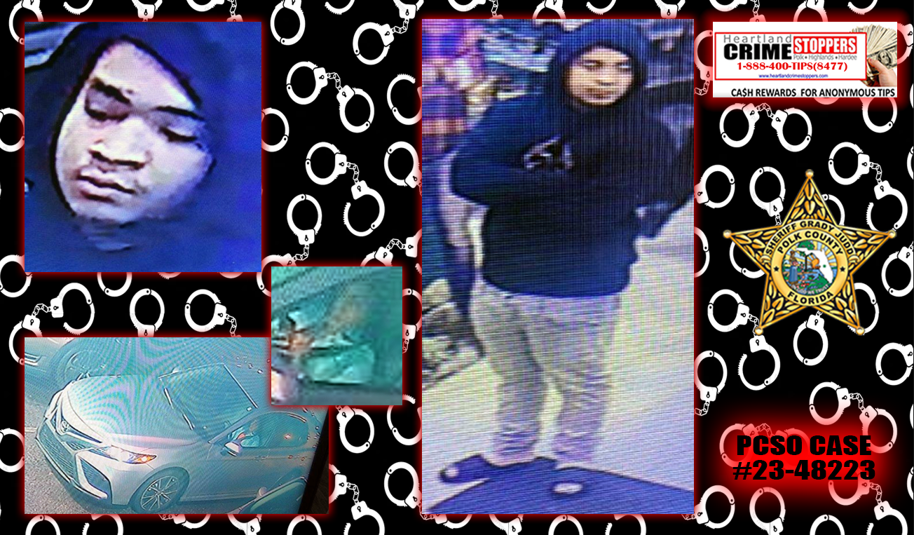 The PCSO is hoping someone might recognize the suspect or the person driving the suspect and provide the identity to Detective Ryan at 863-298-6200, or at WRyan@polksheriff.org.